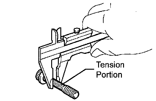 a. Using a vernier caliper, measure the tension portion diameter of the main bearing cap bolt.