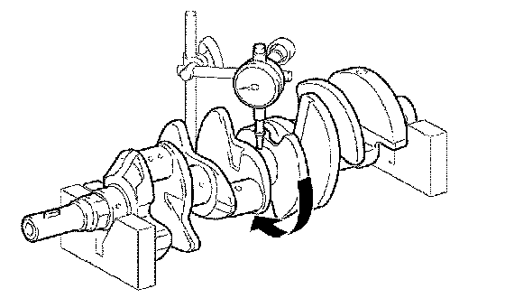2 Using a dial indicator, measure the circle runout at the center journal.