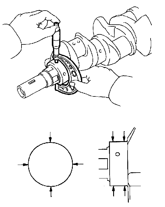 2 Check each main journal and crank pin for taper and out of round as shown in the illustration.