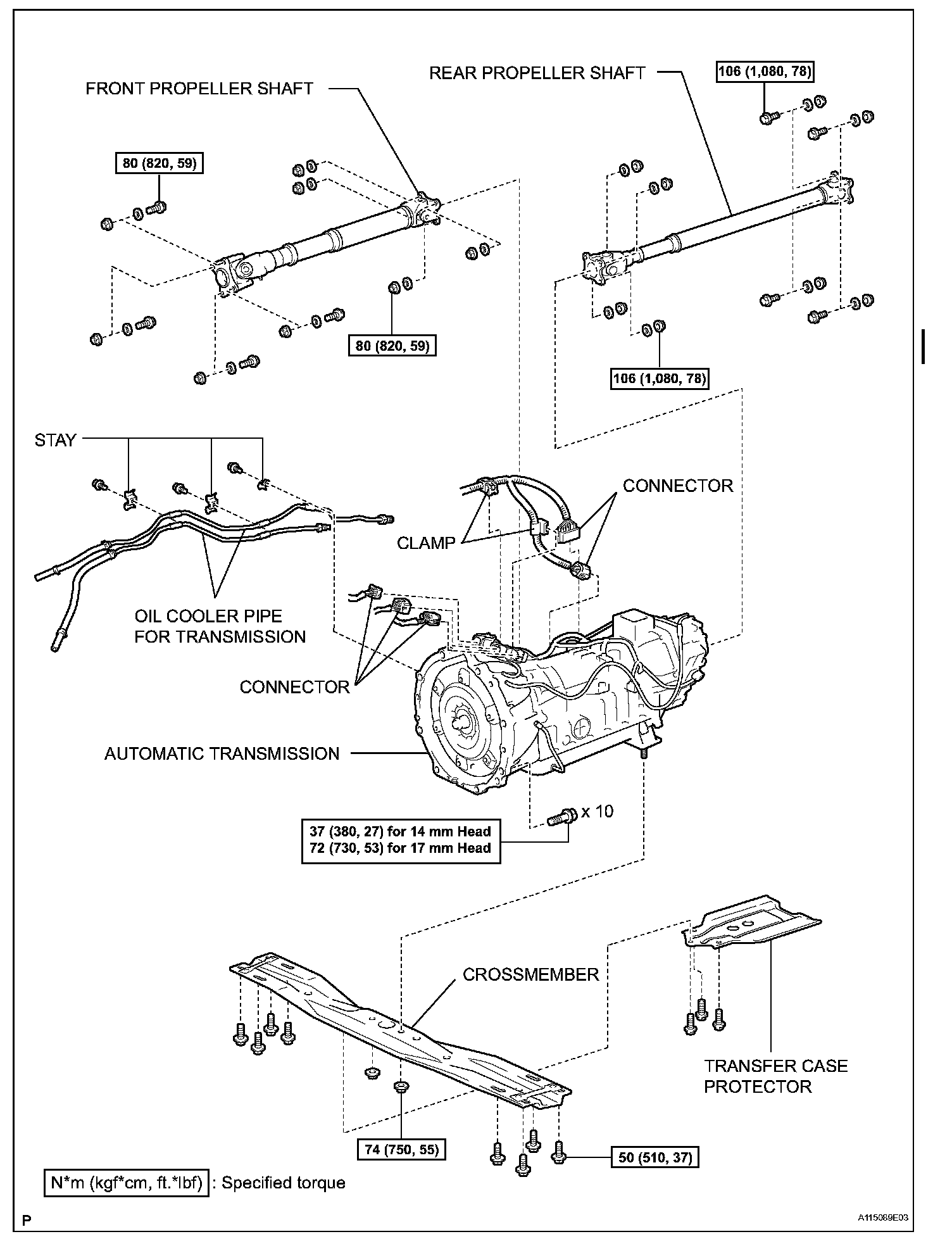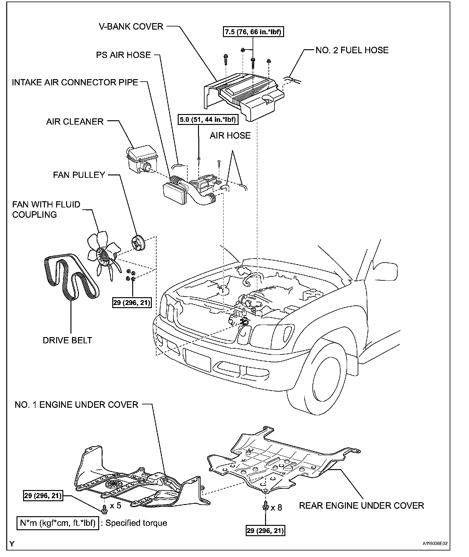 Torque: 50 Nm (510 kgf-cm, 37 ft. lbs.) for bolts
