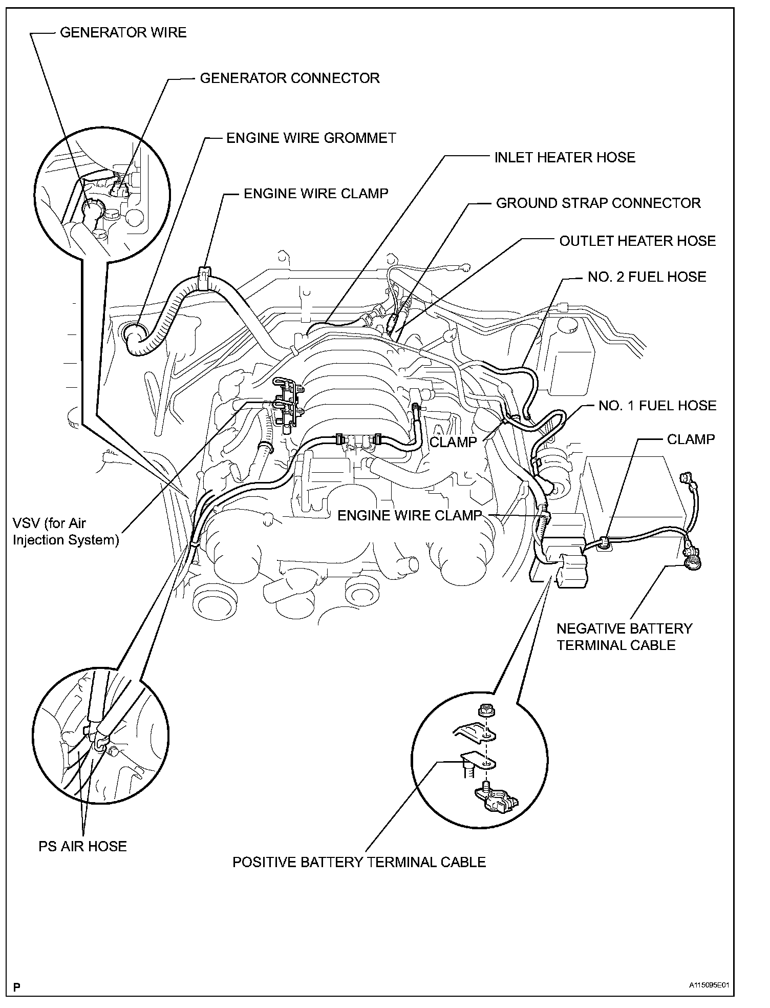 c. Connect the hose clamp for the PS air hose.