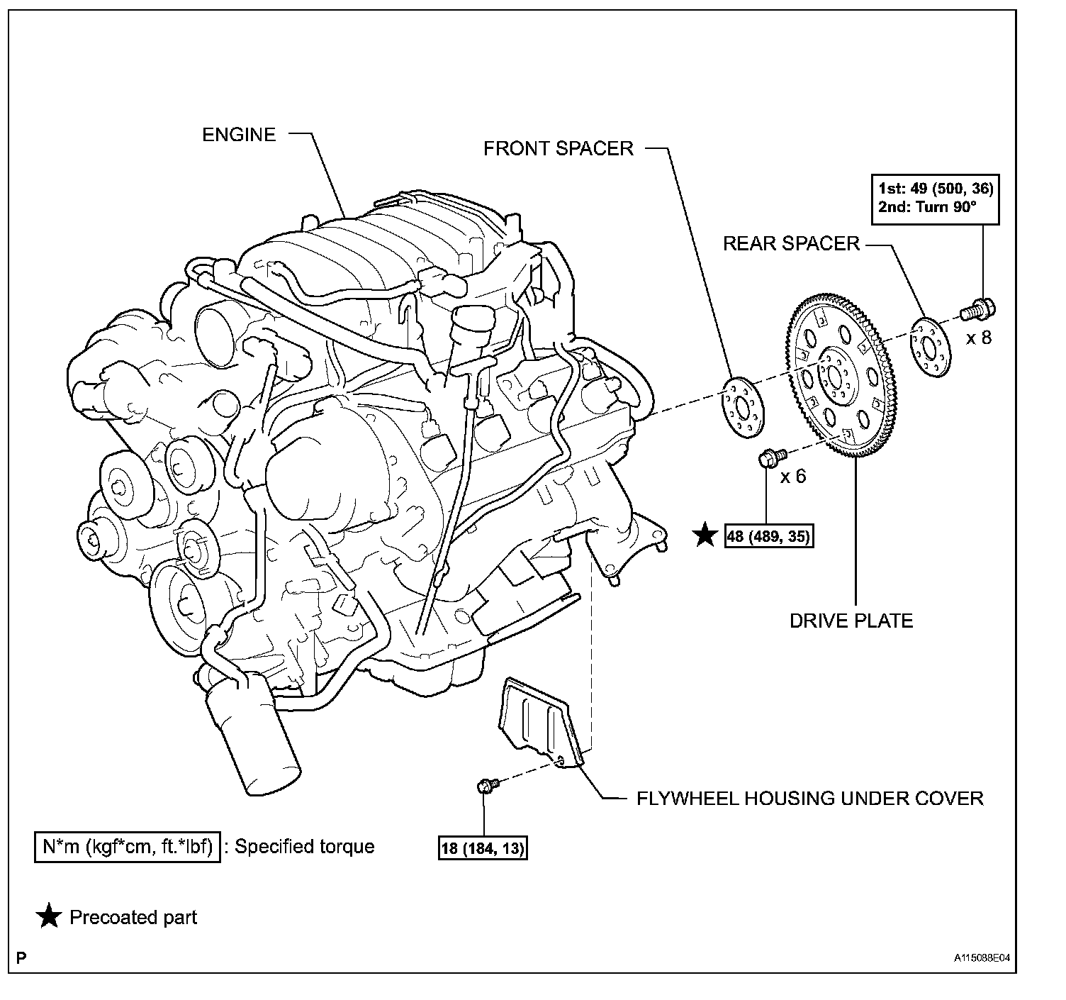 Torque: 49 Nm (500 kgf-cm, 36 ft. lbs.)