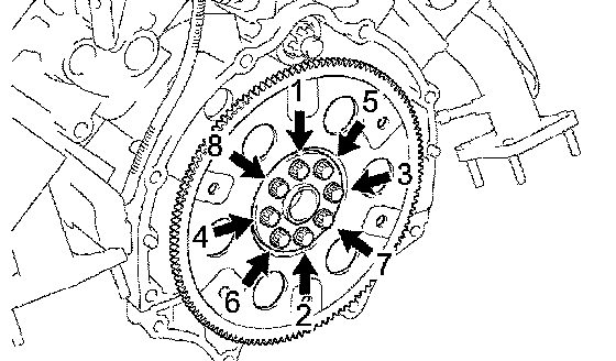 c. Install and uniformly tighten the 8 mounting bolts in several passes, in the sequence shown in the illustration.
