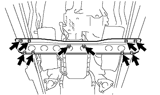 e. Install the frame crossmember with the 8 bolts and 4 nuts.