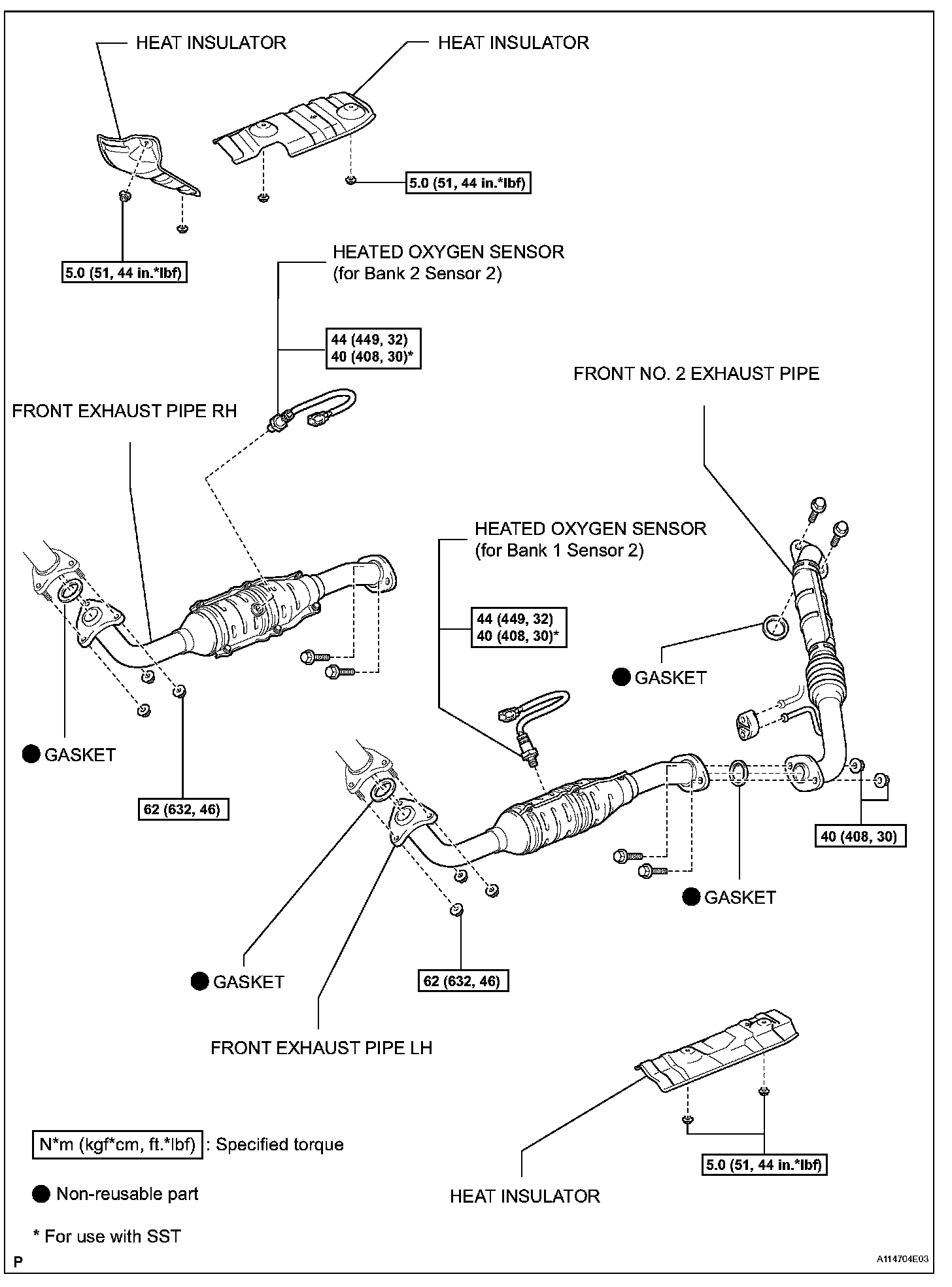 Torque: 44 Nm (449 kgf-cm, 32 ft. lbs.) for use without SST
