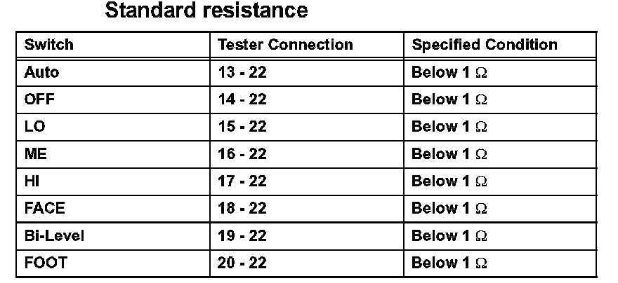 b. Gradually move the temperature control lever from "COOL" side to "WARM" side, and then check that the resistance between terminals 11 and 12 increases to 3.0 k ohms.