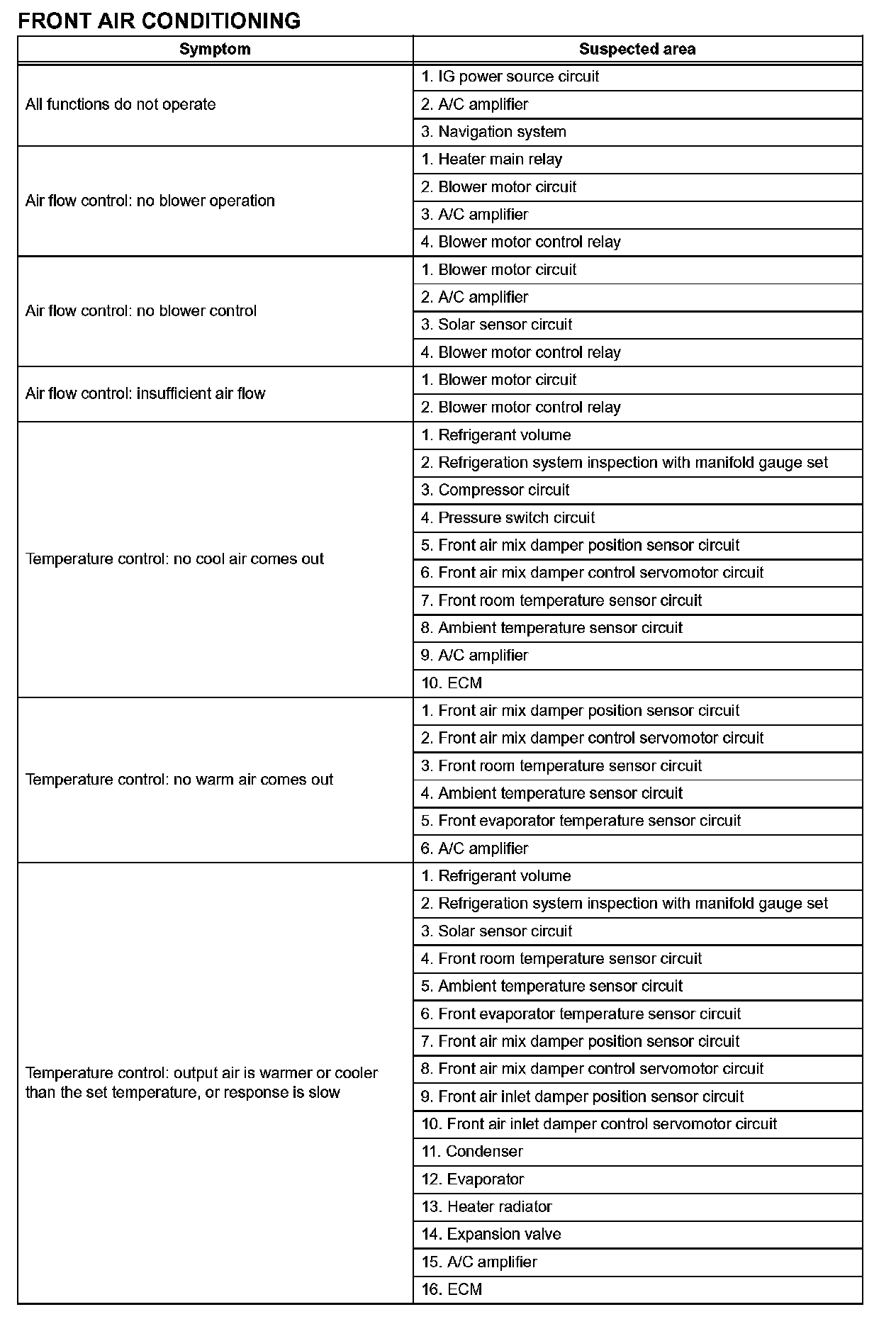Problem Symptoms Table - Front A/C (Part 2):