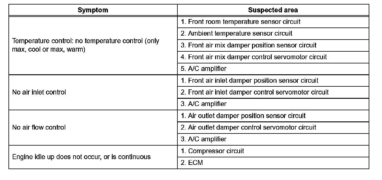 Problem Symptoms Table - Front A/C (Part 1):