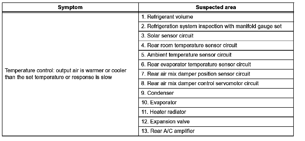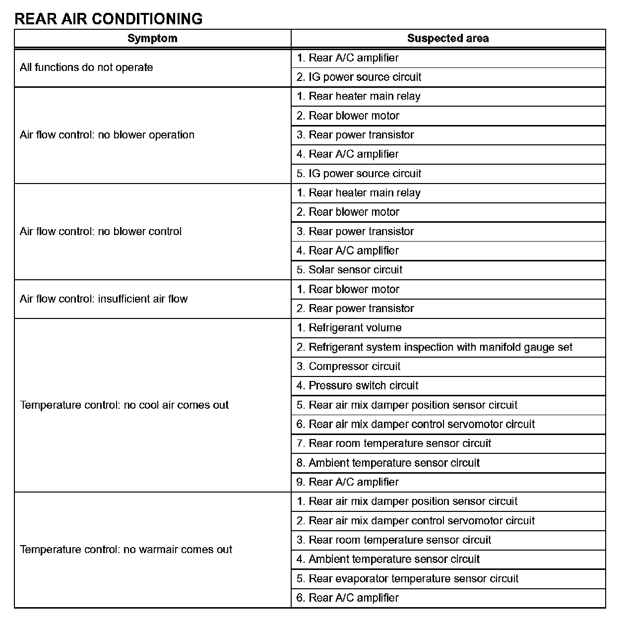 Problem Symptoms Table - Rear A/C (Part 1):