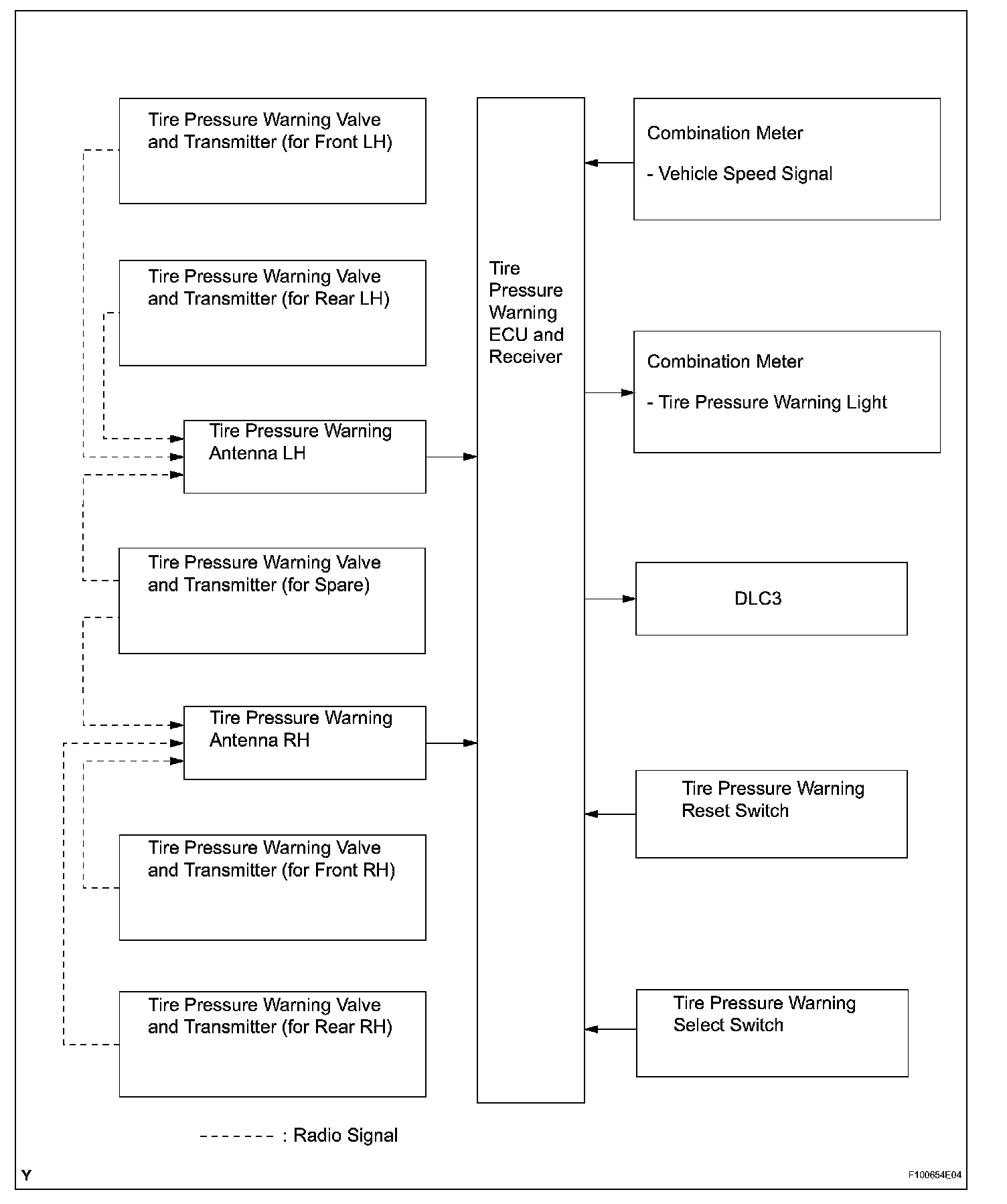 SYSTEM DIAGRAMHINT: The tire pressure warning valve and transmitter sends information on the temperature inside the tire, the ID, and the tire pressure.