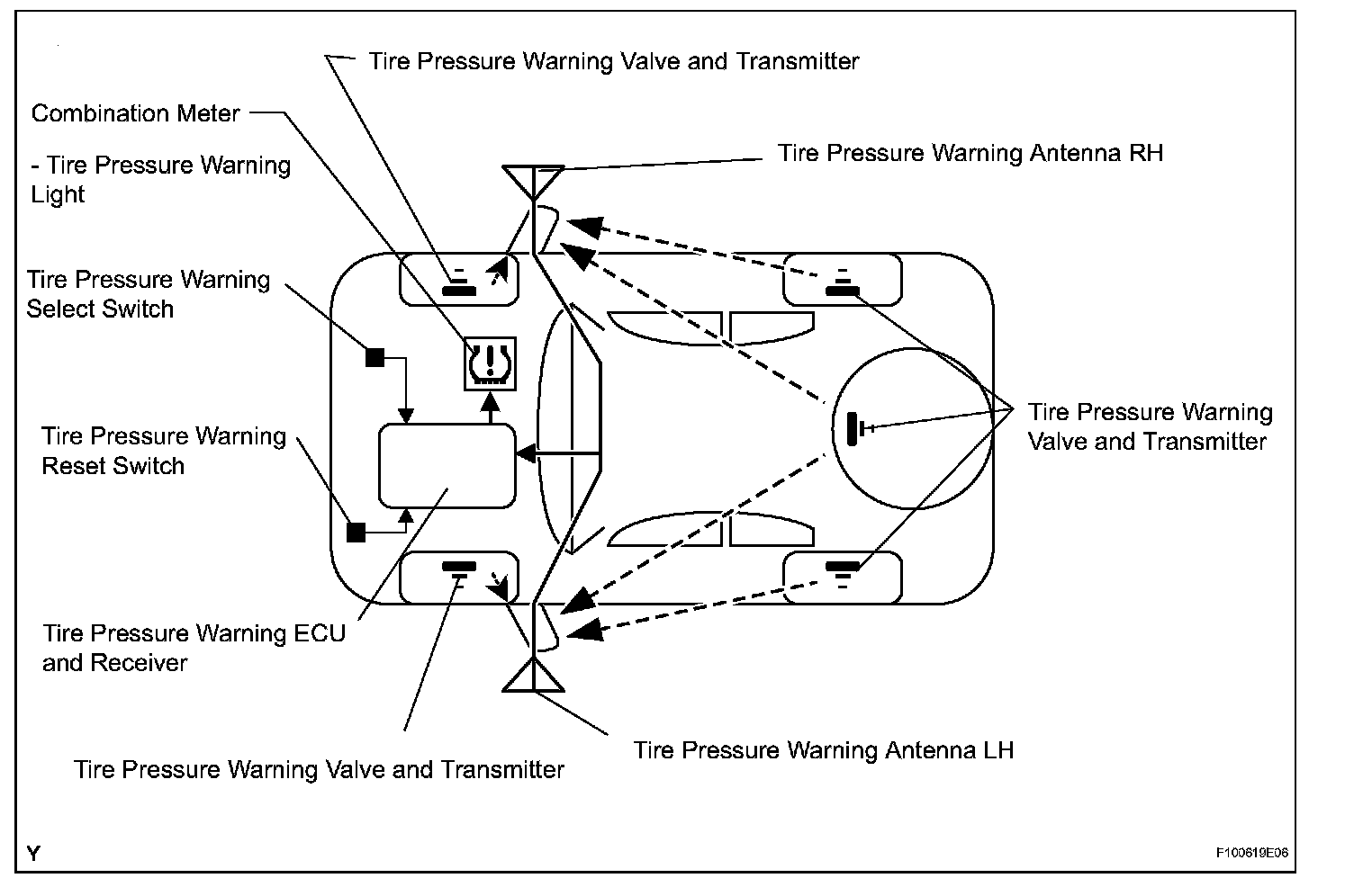 ^ The control ECU can be used to register two sets of transmitter IDs, and can select one or the other using the tire pressure warning select switch. Consequently, there is no need to register the transmitter IDs again each time a tire set is changed.