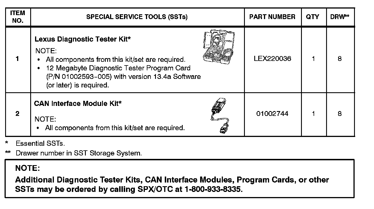 ^ The DTCs will automatically clear when the tire pressure warning valves/sensors are activated.