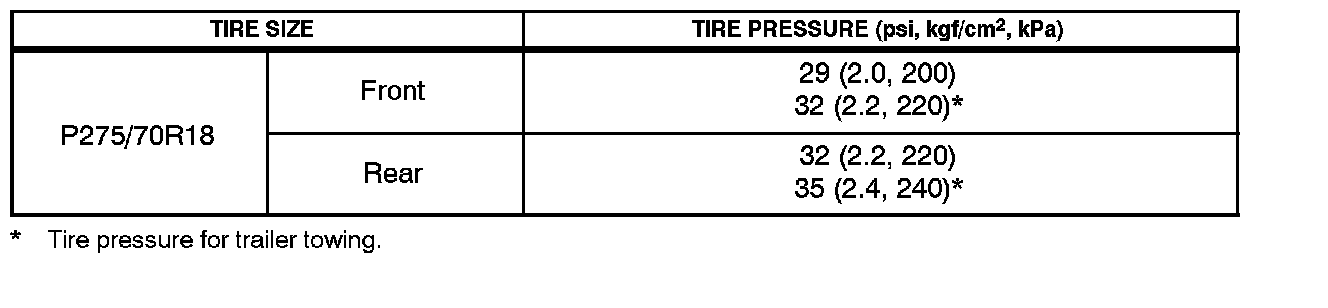 6. Adjust all tires (including the spare tire) to the standard tire inflation pressure, as indicated on the Tire and Loading Information label located inside the driver's door jam and confirm that the Low Tire Pressure Warning Light is OFF.