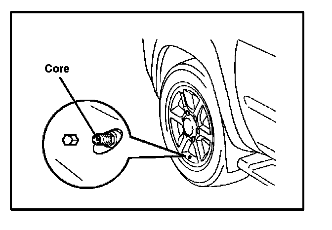 4. Press or remove the valve core to reduce the tire inflation pressure rapidly by 6 psi (0.4 kgf/sq.cm, 40 kPa), or more, within 30 seconds.