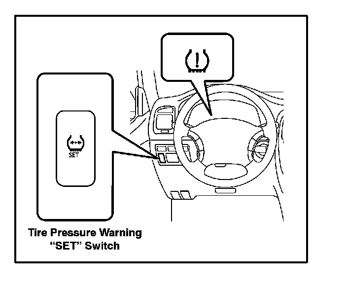 8. Push and hold the Tire Pressure Warning "SET" Switch for 3 seconds until the Low Tire Pressure Warning Light blinks 3 times and then turns OFF to set the tire pressure initialization.