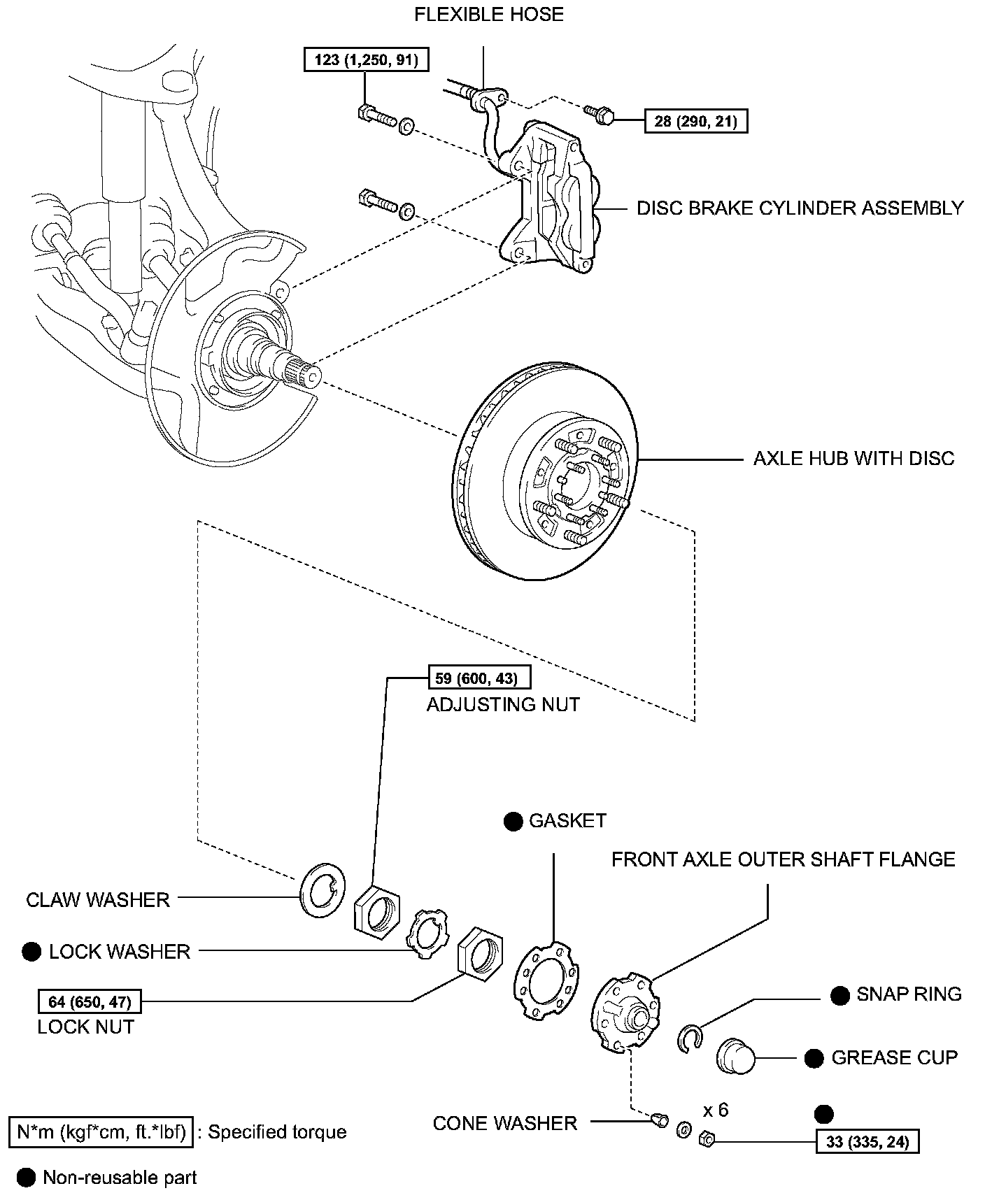 1. INSTALL FRONT AXLE HUB WITH DISC