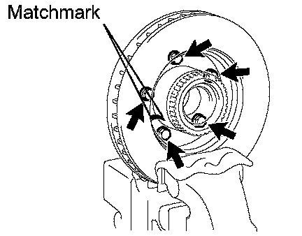 b. Place matchmarks on the axle hub and disc.