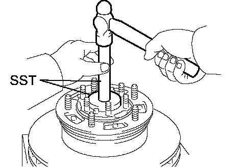 b. Using SST, torque the lock nut.