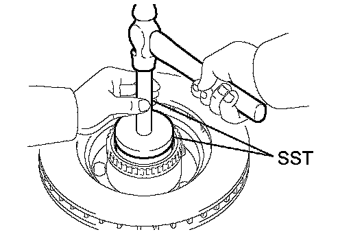 b. Using SST and a hammer, carefully install a new inside bearing outer race.