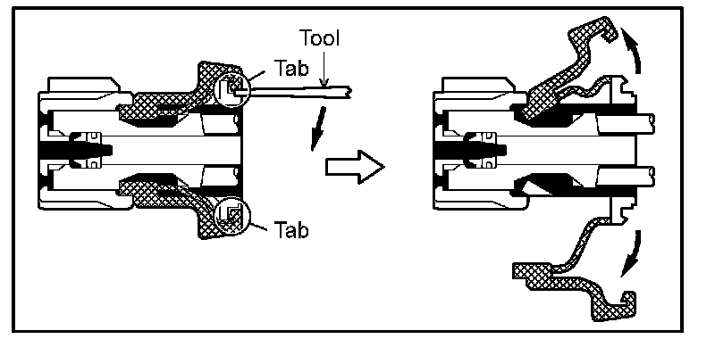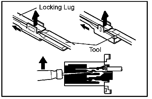a. Locking device must be disengaged before the terminal locking clip can be released and the terminal removed from the connector.