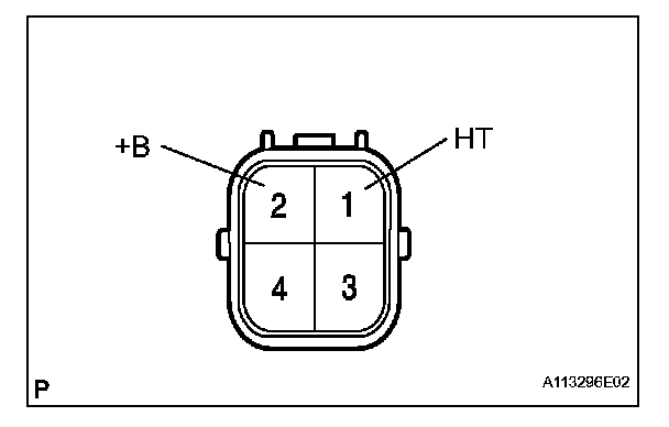 b. Measure the heated resistance between terminals 1 (HT) and 2 (+B) of the sensor.