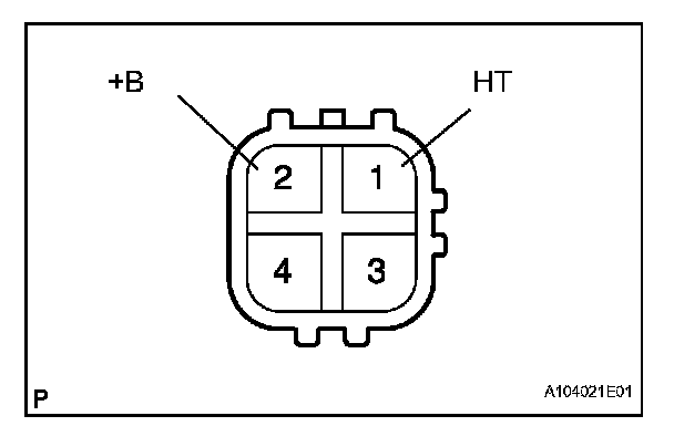 b. Measure the heater resistance between terminals 1 (HT) and 2 (+B) of the sensor.
