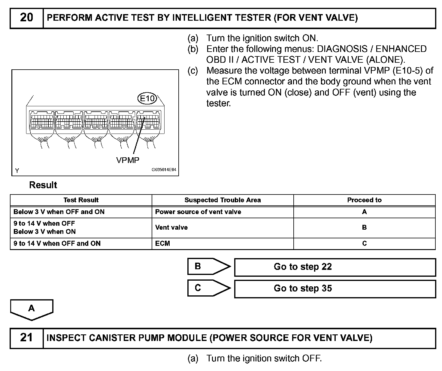 NOTE: The intelligent tester is required to conduct the following diagnostic troubleshooting procedure