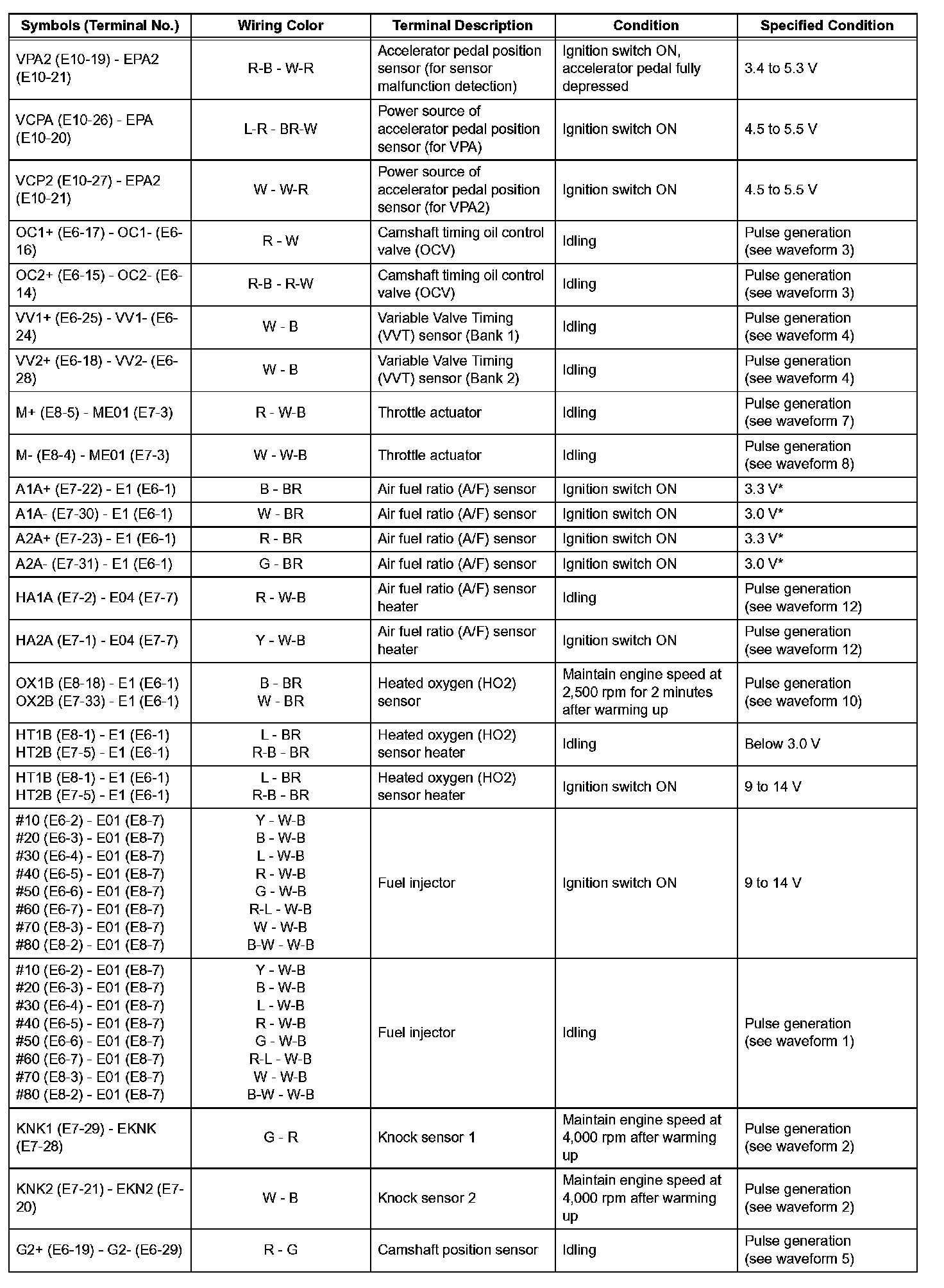 Pinout Values and Diagnostic Parameters
