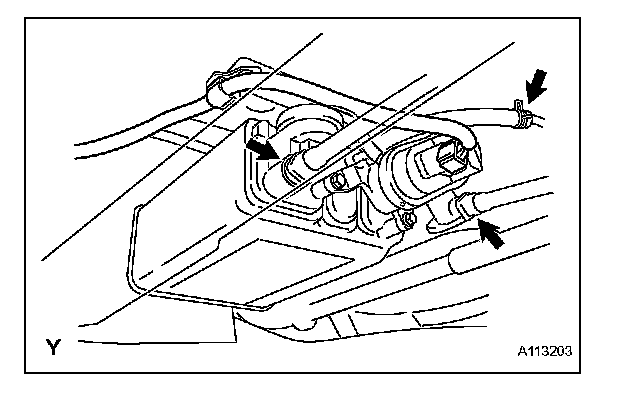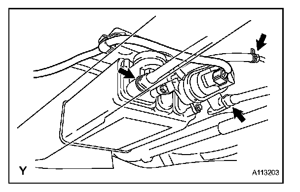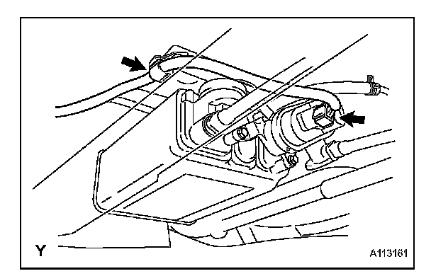 4. Disconnect the vent line tube from the canister (leak detection pump).