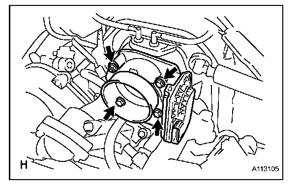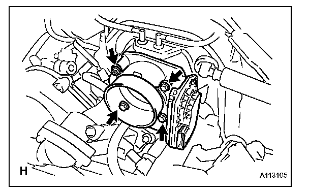 c. Remove the 3 bolts, nut, throttle body and gasket.