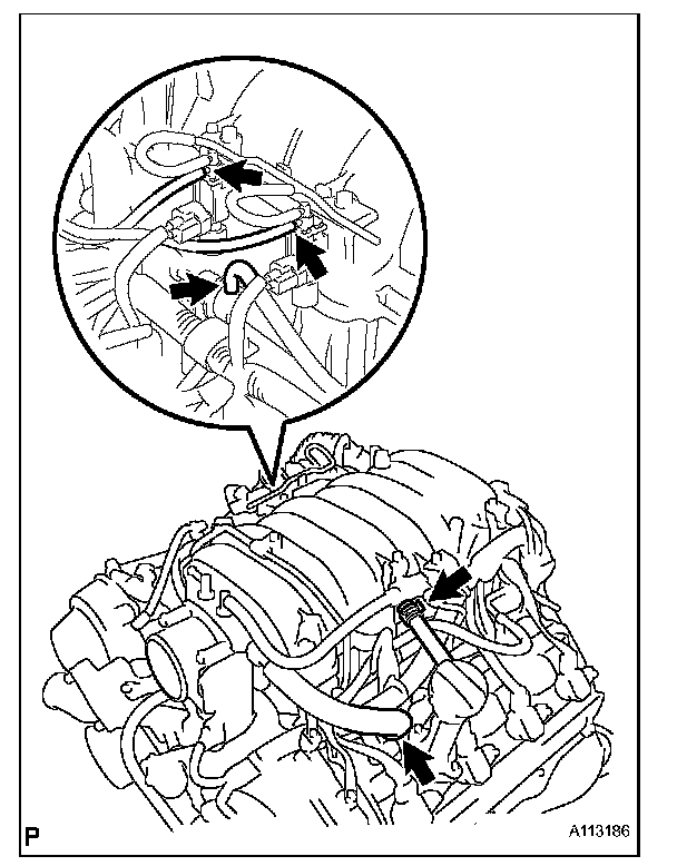 4. Disconnect the 2 vacuum hoses from the VSVs (for air injection system).