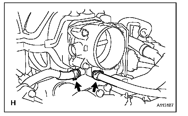 c. Disconnect the 2 water by-pass hoses from the throttle body.