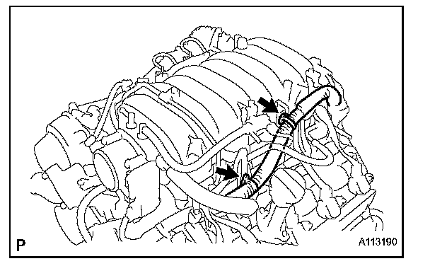 j. Connect the 2 wire clamps to the wire clamp brackets on the RH delivery pipe.
