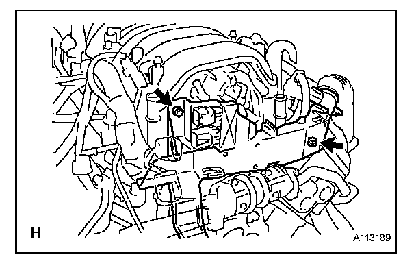 i. Remove the bolt and wire bracket from the intake manifold.