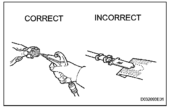 3. Before connecting a connector, check that there are no deformed, damaged, loose or missing terminals.