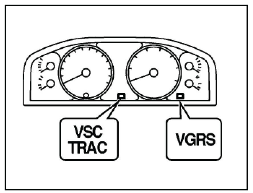 2. Turn the ignition switch to the "ON" position and check that the VGRS and VSC/TRAC warning lights illuminate for a few seconds.