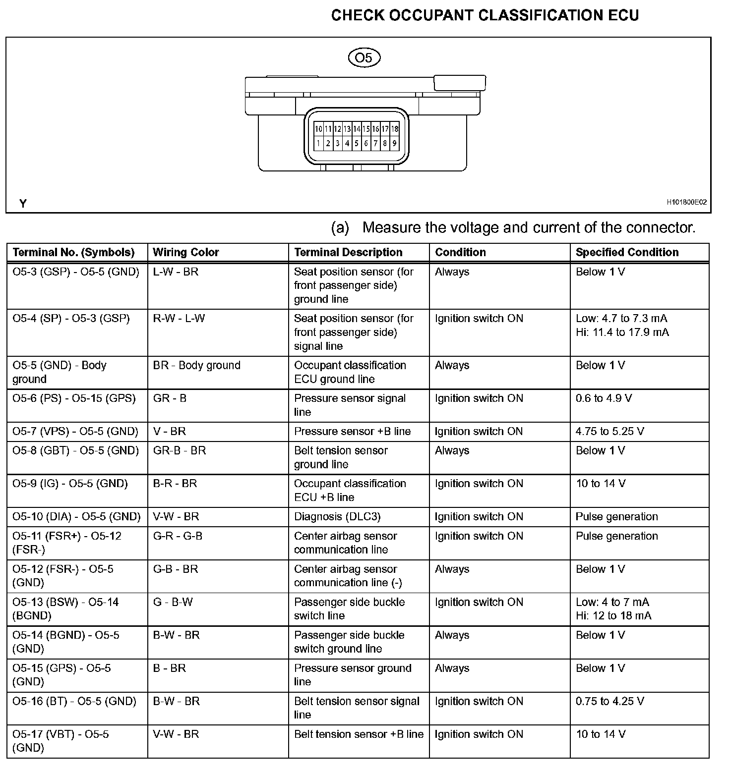 Pinout Values and Diagnostic Parameters