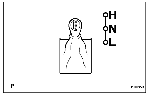 When shifting, always put the shift lever of the transmission in the N position. In other positions, the gears of the transfer clash, and switching cannot be performed.