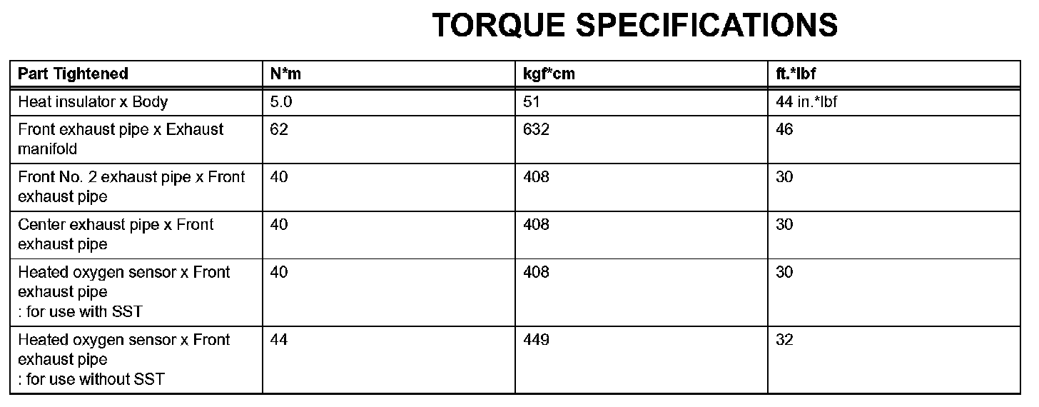 Exhaust - Torque Specifications: