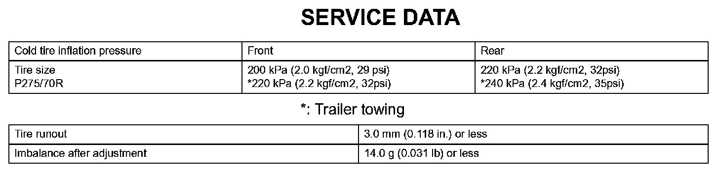 Tire And Wheel - Service Data: