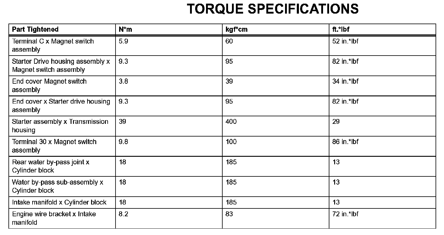 Starting - Torque Specifications: