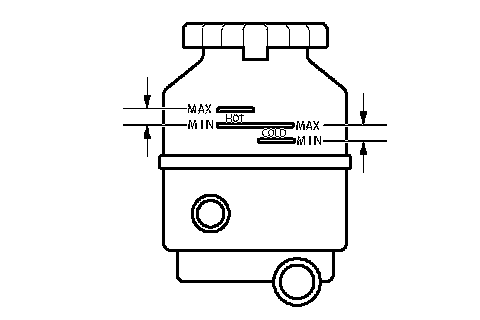 HINT: Check that the fluid level is within the HOT LEVEL range on the reservoir. If the fluid is cold, check that it is within the COLD LEVEL range.