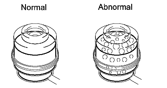 If there is foaming or emulsification, bleed air from the power steering system.