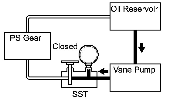 g. With the engine idling, close the valve of the SST and observe the reading on the SST