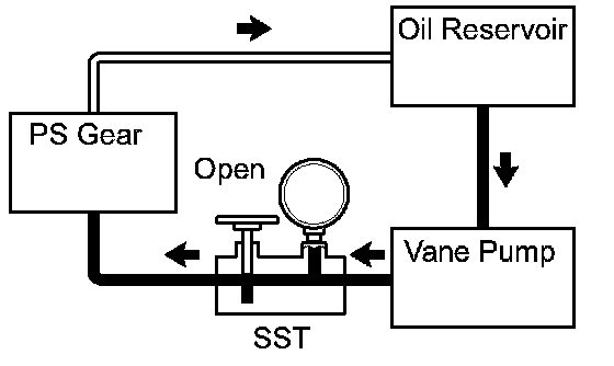 j. With the engine idling and valve fully opened, turn the steering wheel to full lock.