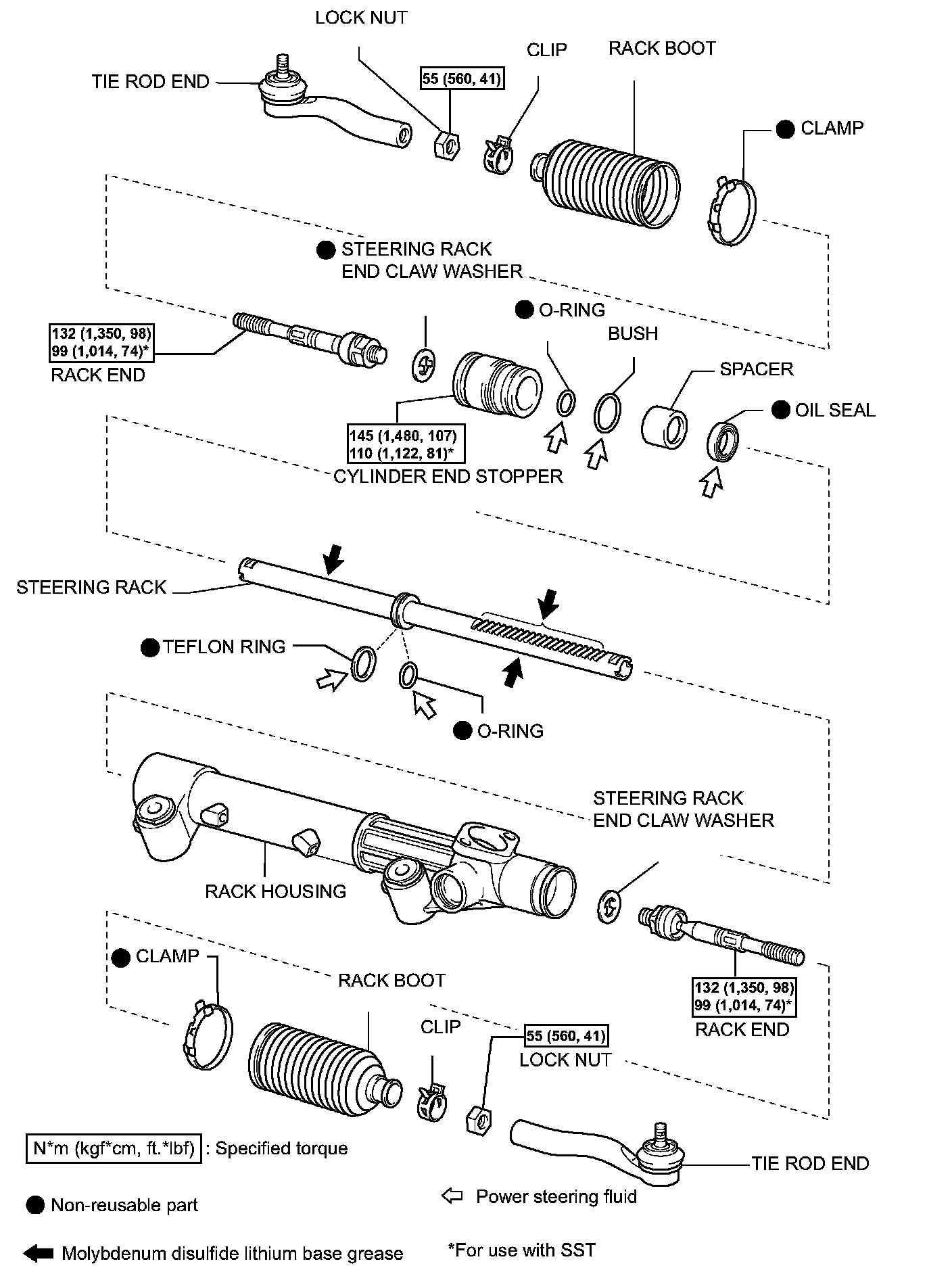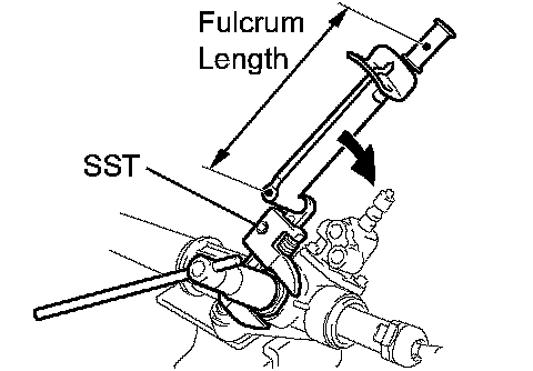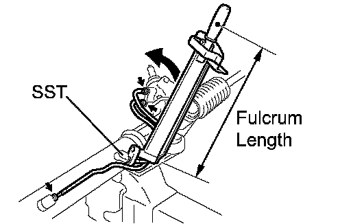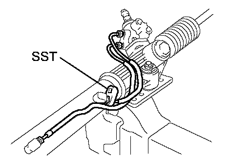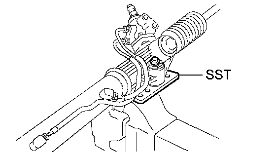 b. Using a spanner to hold the steering rack steady, and using SST, torque the rack end.
