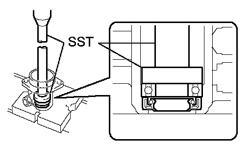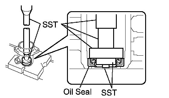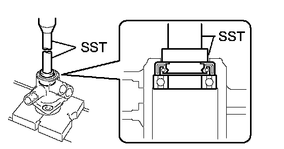 a. Using SST, press out the oil seal and bearing from the control valve housing.