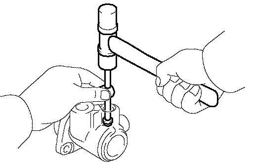 b. Holding the rack guide spring cap rotating, and using SST, torque the nut.