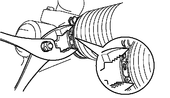 c. Using pliers, tighten a new clamp, as shown in the illustration.