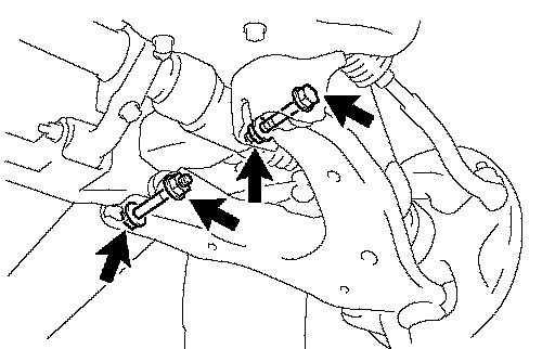 a. Remove the 2 nuts, 3 bolts and lower suspension arm.